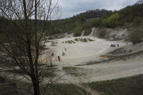 Voraus möchte ich folgendes sagen: Hechlingen ist ein herausragendes Beispiel, wie mit einem ausgeklügelten didaktischen Ansatz die Ausbildung vorgenommen wird. Neben der praktischen Übung auf dem Motorrad wird in den Ein- und Zweitageskursen viel Zeit gelassen die einzelnen Fahrvorgänge in ihre Abschnitte aufzuteilen und jeden einzeln zu erklären, zu üben und dann alle in Sequenz für jeden Fahrer gangbar zu machen. Es ist ein sichtbarer Unterschied zu anderen Parks oder Events, bei denen sich die Erklärungen auf ein "…laß' halt das Gas offen!" beschränken. Es ist exakt die Angst vieler Fahrer in die Umgebung "Enduro" oder "off-road" hineingeschmissen zu werden um sich dann weh zu tun oder wegen Überlastung hinzuschmeißen oder einfach nur zu scheitern. Und daraus die Lust am off-road-Motorradfahren zu verlieren. Ich lehne mich so weit aus dem Fenster zu sagen, daß in Hechlingen aus Angsthasen mit Anspruch ambitionierte off-road Abenteurer werden können.